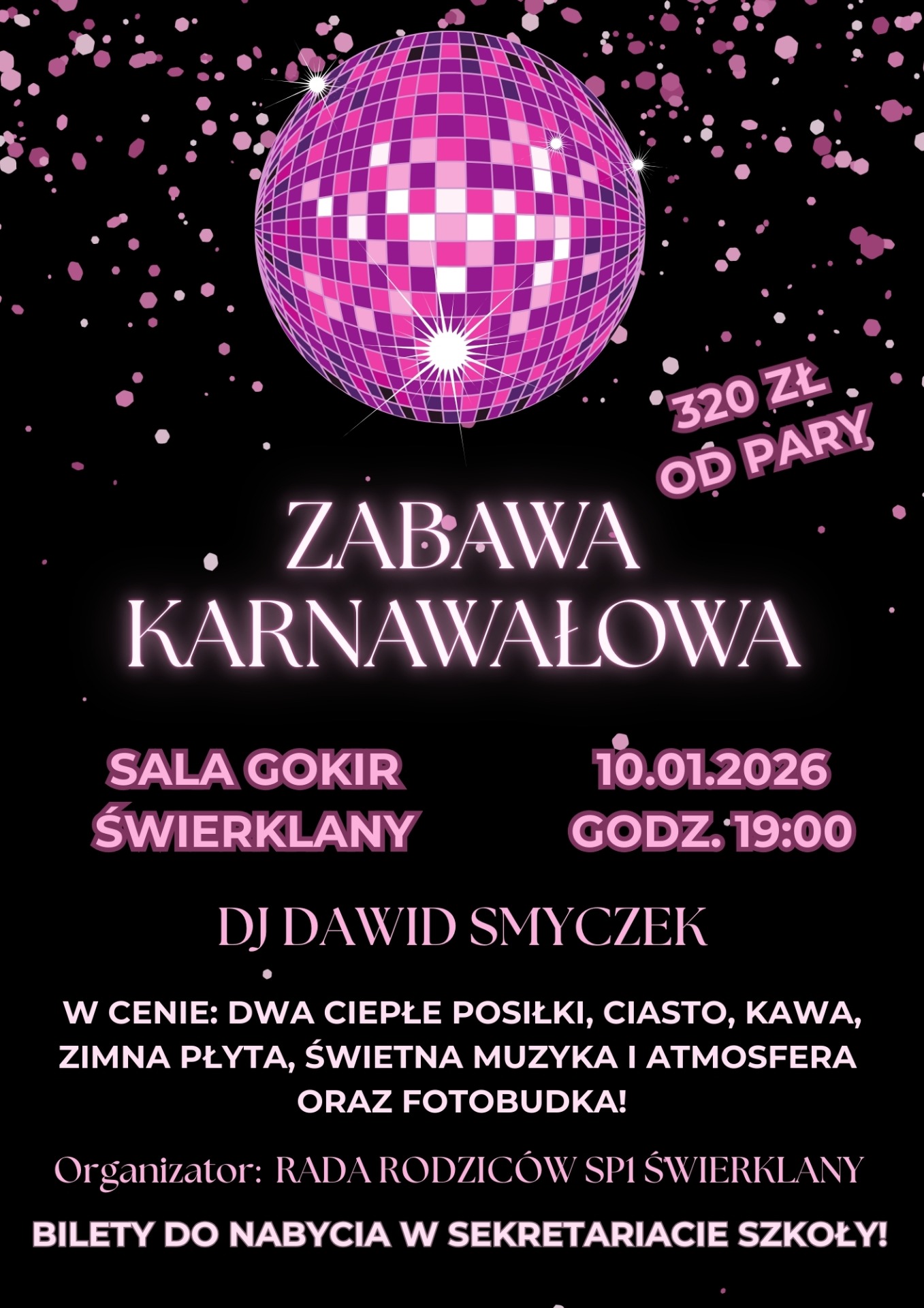 Rada Rodziców zaprasza do rezerwacji miejsc na zabawę karnawałową